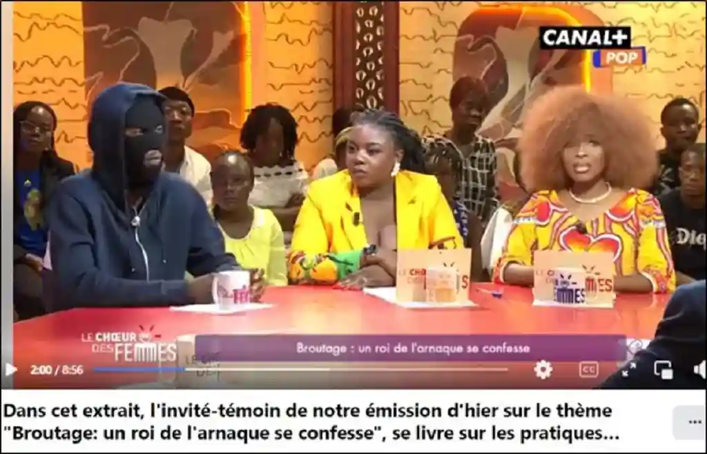 Sur l’émission « Le Chœur des femmes » du 22 mai 2024 de Canal+ Pop, un cybercriminel ivoirien affir...