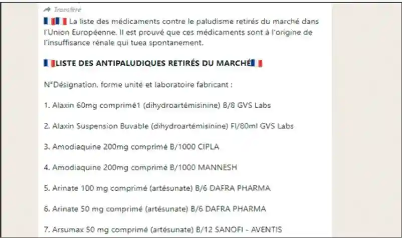 Quarante-neuf médicaments utilisés pour le traitement du paludisme ont été retirés du marché europée...