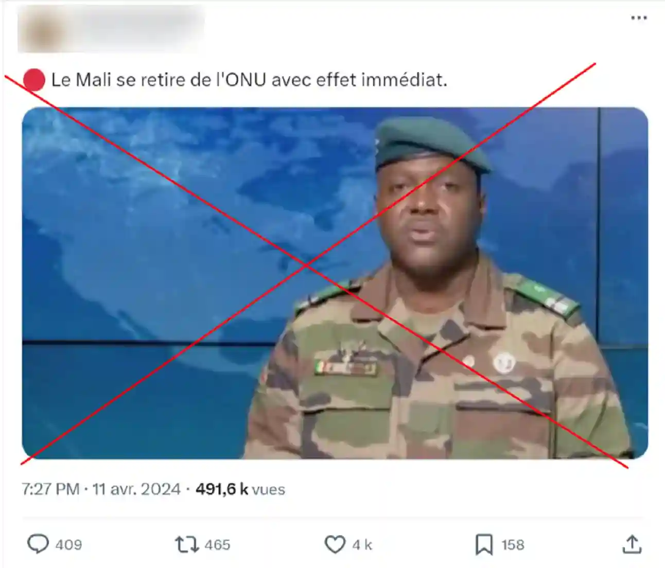 Une publication annonçant le retrait du Mali de l’Organisation des Nations Unies (Onu) est largement...