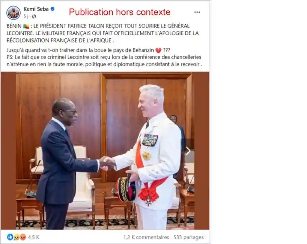Dans une publication Facebook, samedi 29 juin 2024, l’activiste Kemi Seba tente de faire croire que ...